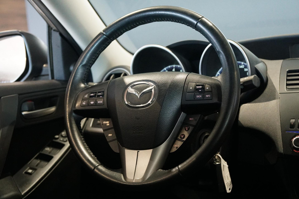CO₂-uitstoot (NEDC): 175 g/kmMazda 3, 2.0 Automaat 150PK, Afneembare trekhaak (1300KG), Stoelverwarming in 5 standen, Climate control, Cruise control, Voorruit verwarmbaar, Bluetooth telefoon koppeling, Parkeersensoren achter, 17 inch lichtmetalen velgen, Leder stuurwiel met bediening voor telefoon + cruise + media, Spiegels elektrisch inklapbaar,