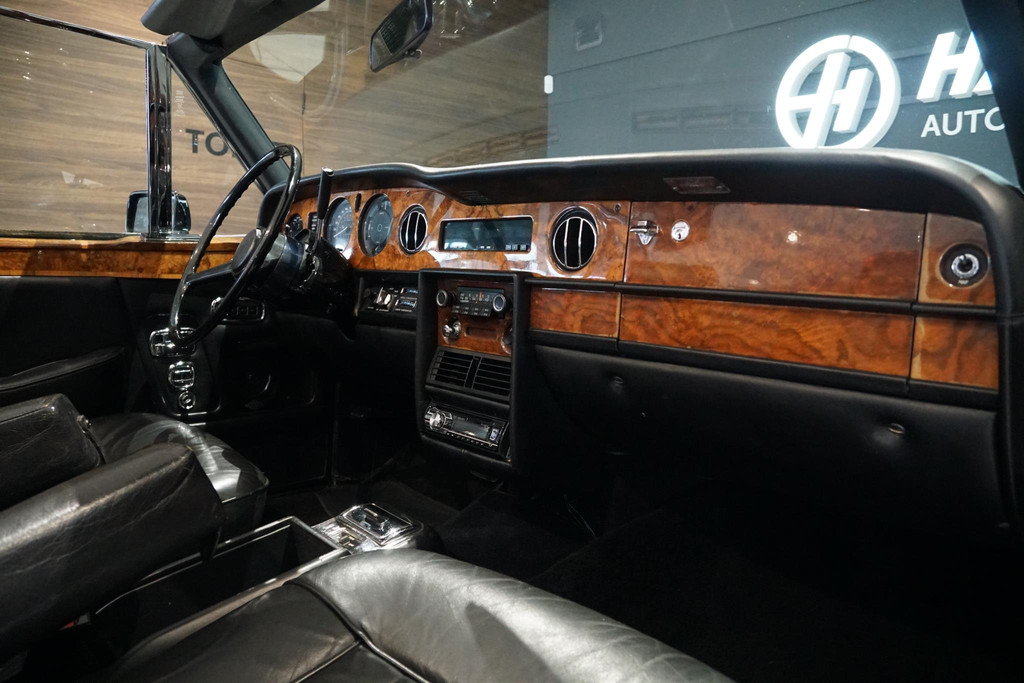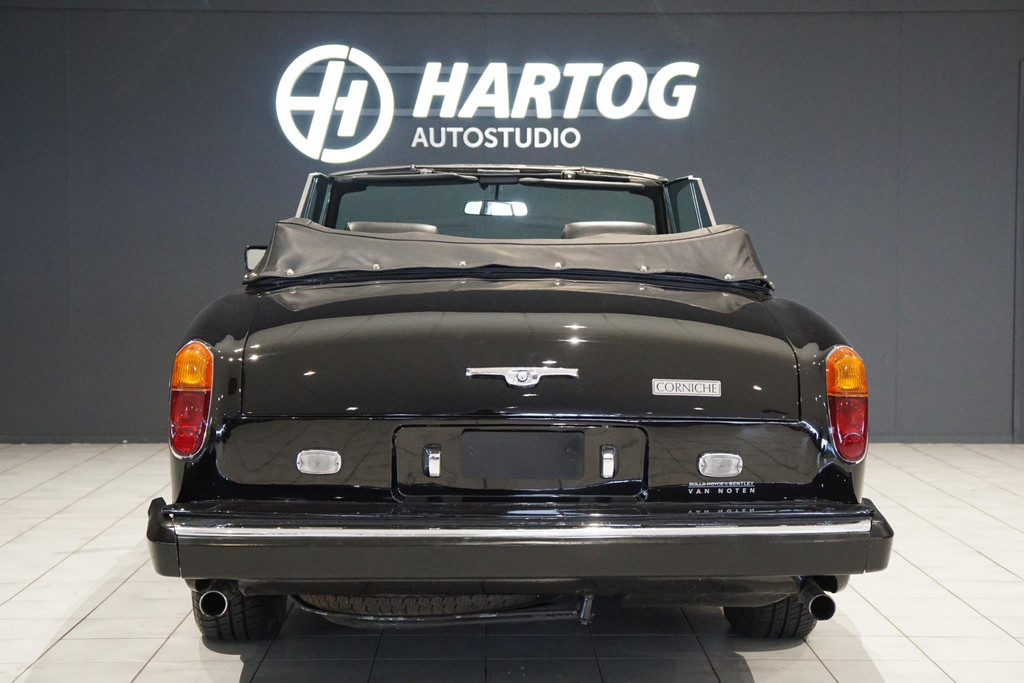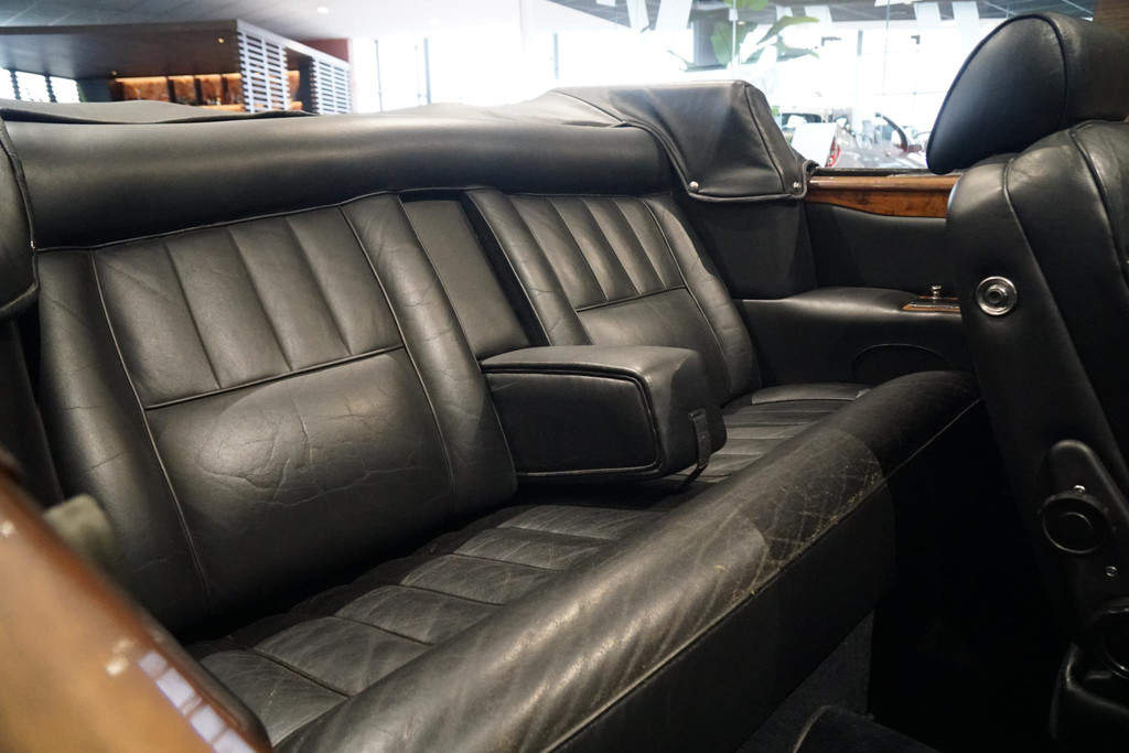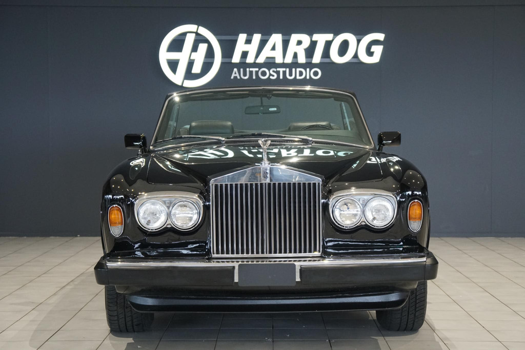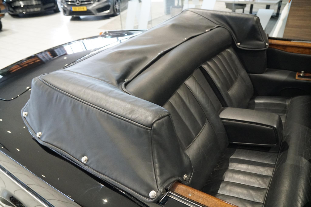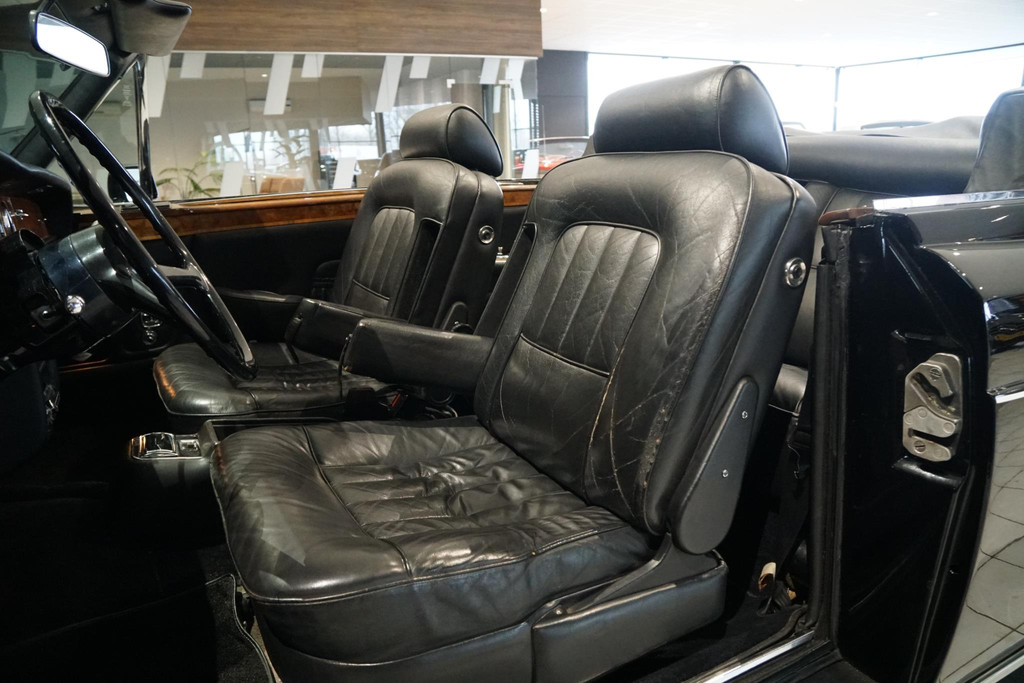 Rolls-Royce Corniche, Belgische afkomst, Elektrisch bedienbaar cabriodak, Vrij van wegenbelasting!, Chique dubbel zwart met volledig zwart lederen bekleding met hout inleg, Witte bies langs de zijkant, All-season white wall banden, Automaat, iconische hoogpolige vloermatten, Auto is al bij het RDW geweest voor een Nederlands kenteken.