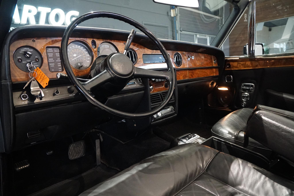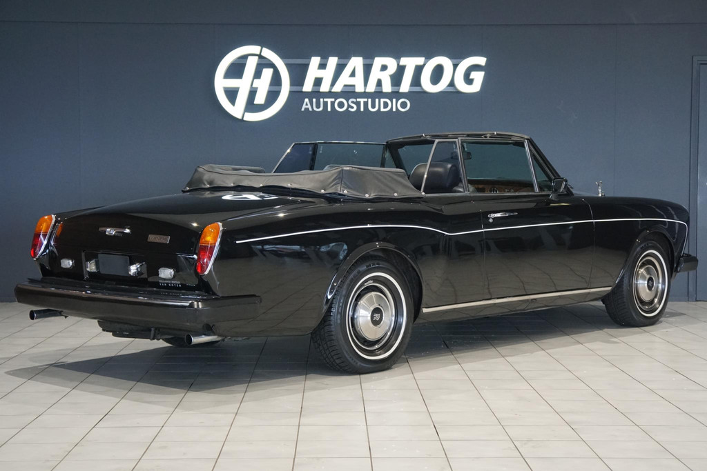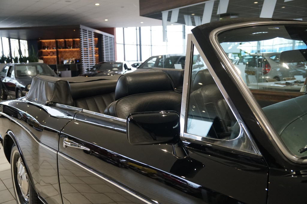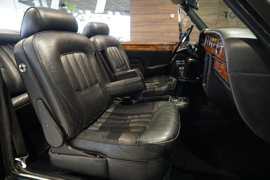 Rolls-Royce Corniche, Belgische afkomst, Elektrisch bedienbaar cabriodak, Vrij van wegenbelasting!, Chique dubbel zwart met volledig zwart lederen bekleding met hout inleg, Witte bies langs de zijkant, All-season white wall banden, Automaat, iconische hoogpolige vloermatten, Auto is al bij het RDW geweest voor een Nederlands kenteken.