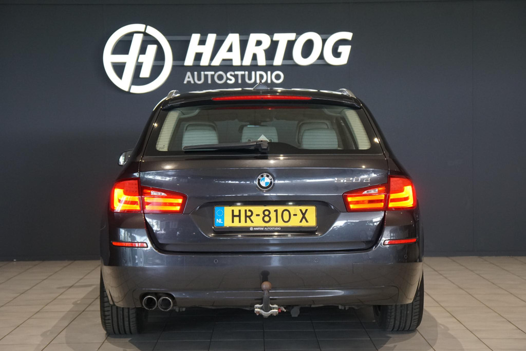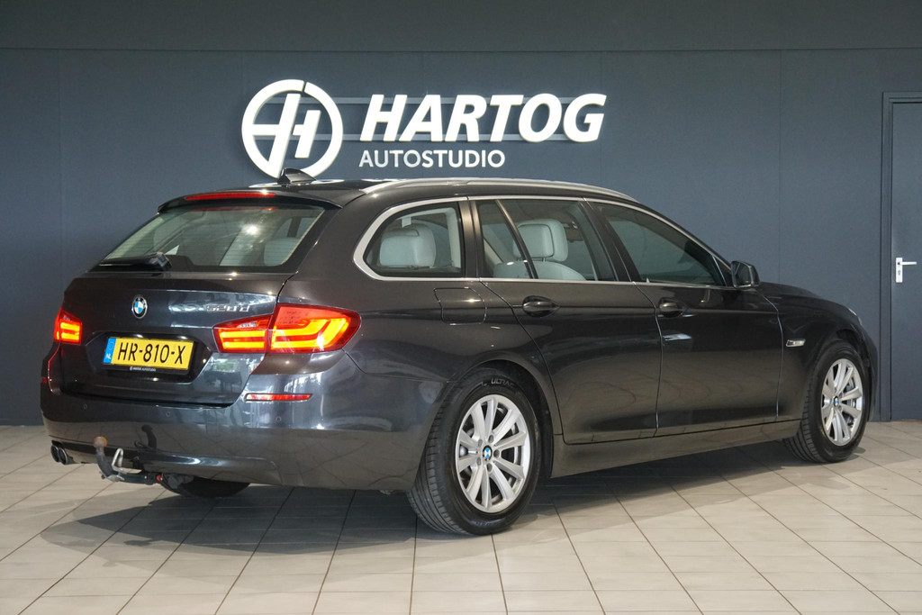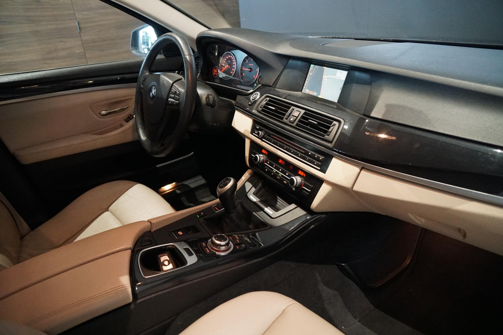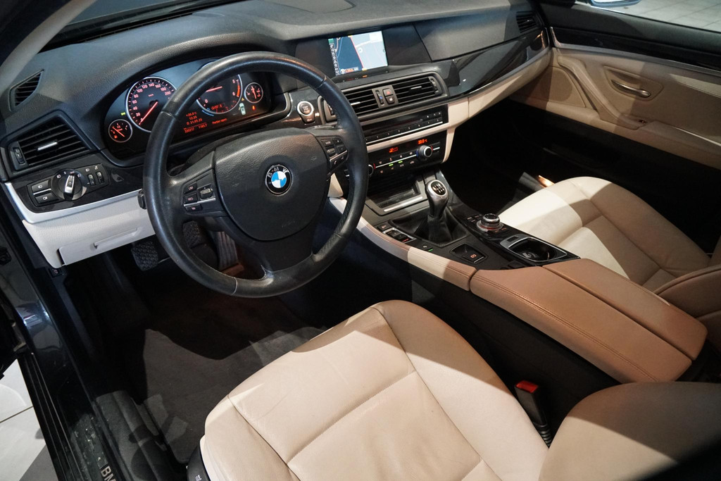 CO₂-uitstoot (NEDC): 130 g/kmBMW 520d, 2 liter met 184PK, Handegeschakeld (6), Lederen bekleding, Parkeersensoren voor + achter, Trekhaak (2000kg), Elektrische achterklep,