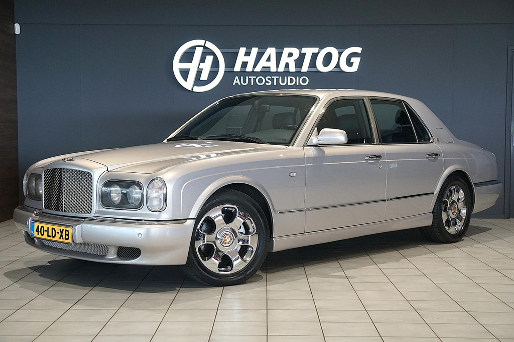 Een origineel Nederlands geleverde Bentley Arnage in het prachtige Silver Storm Metallic. Zilver met een blauwige gloed, zeker als de zon erop staat. Stijlvol gecombineerd met een donkerblauw lederen interieur, uiteraard voorzien van het nodige hout en diepe tapijten. En een Red Label, dus de echte met het 6.75 liter V8 blok, aangepast aan de huidige tijd. ‘Effortless’ zeggen de Britten, of moeiteloos in goed Nederlands.